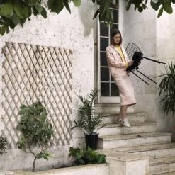 WM String -ruokatuoli merkiltÀ Menu on hollantilaisen Studio WM:n muotoilema. Tavoitteena oli luoda tuoli kevyen ilmavalla ilmeellÀ, joskin samaan aikaan myös vankalla ja vakaalla tunnulla. TÀstÀ syystÀ Studio WM valitsi työstettÀvÀksi materiaaliksi metallin ja alkoi työskennellÀ löytÀÀkseen niin ohuen metallisÀikeen kuin mahdollista. Lopputuloksena on moderni, tyylikÀs tuoli upealla ruutukuvioinnilla, joka toimii hienona kontrastina istuintyynylle tai tyynylle. Koska WM String on valmistettu kestÀvÀstÀ materiaalista, se sopii kÀytettÀvÀksi sekÀ sisÀ- ettÀ ulkotiloissa.